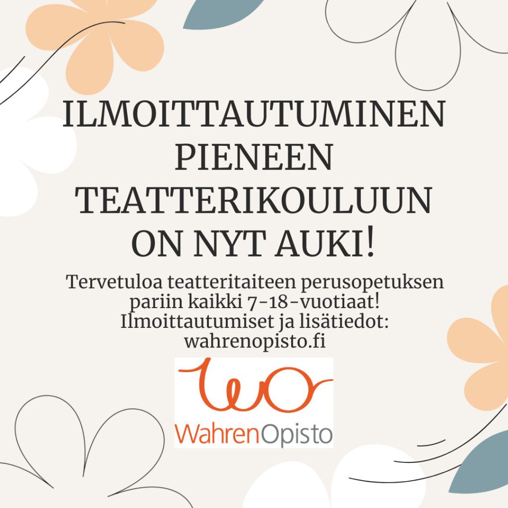 Teatterikoulu on kaikille teatterin tekemisestä kiinnostuneille yli 10-vuotiaille. Nuorempien on mahdollista ilmoittautua mukaan Forssan ryhmiin. Paikkoja on rajoitetusti, joten ilmoita pian oma lapsesi / nuoresi mukaan harrastamaan teatteria tavoitteellisesti, ilon kautta.